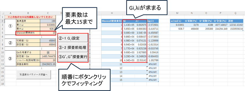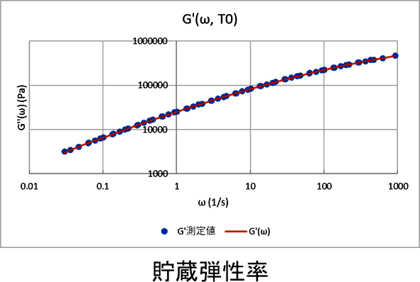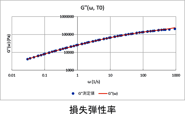 求めた緩和弾性率から貯蔵弾性率、損失弾性率を逆算してみると、測定値と非常によく一致しています。また、以下が検証結果となります。